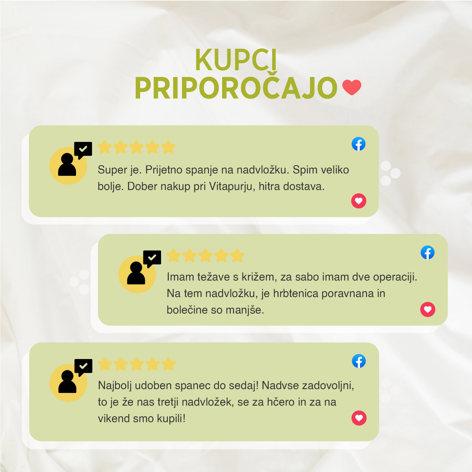 Vrhnja plast nadvložka ima piramidno strukturo, ki daje nežen masažni občutek, še dodatno razbremeni pritiske na telo in omogoča še boljši in mirnejši spanec.