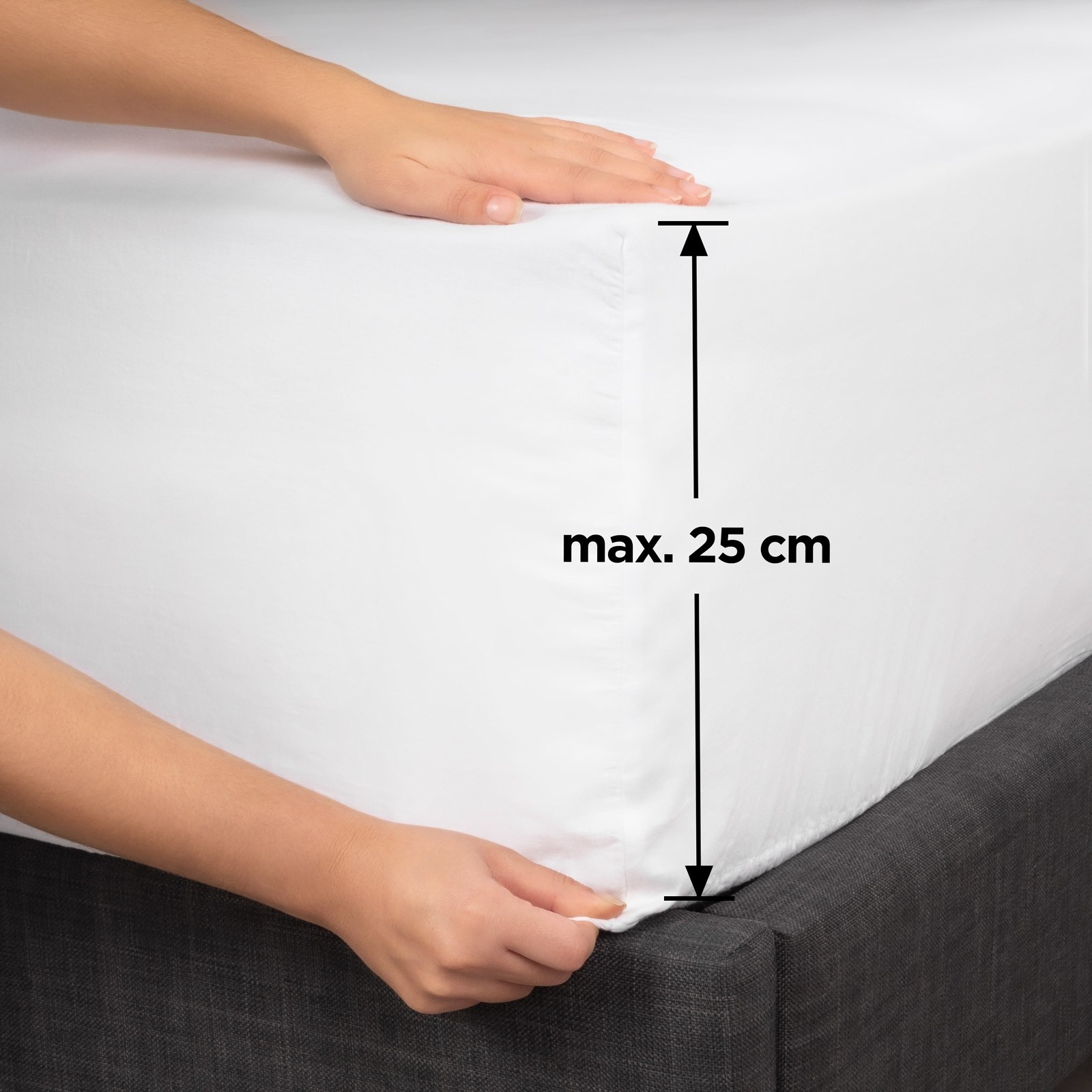 Vrhunske napenjalne rjuhe so narejene iz 100 % česanega bombaža. Česani bombaž je izjemno mehka različica bombaža, izdelana iz posebej obdelanih vlaken, preden jih spletejo v prejo. Rjuha je do kože izjemno prijazna in ji dovoli, da diha. Kakovost niti in poseben postopek izdelave zagotavljata voljno in trpežno tkanino, ki je enostavna za vzdrževanje.
