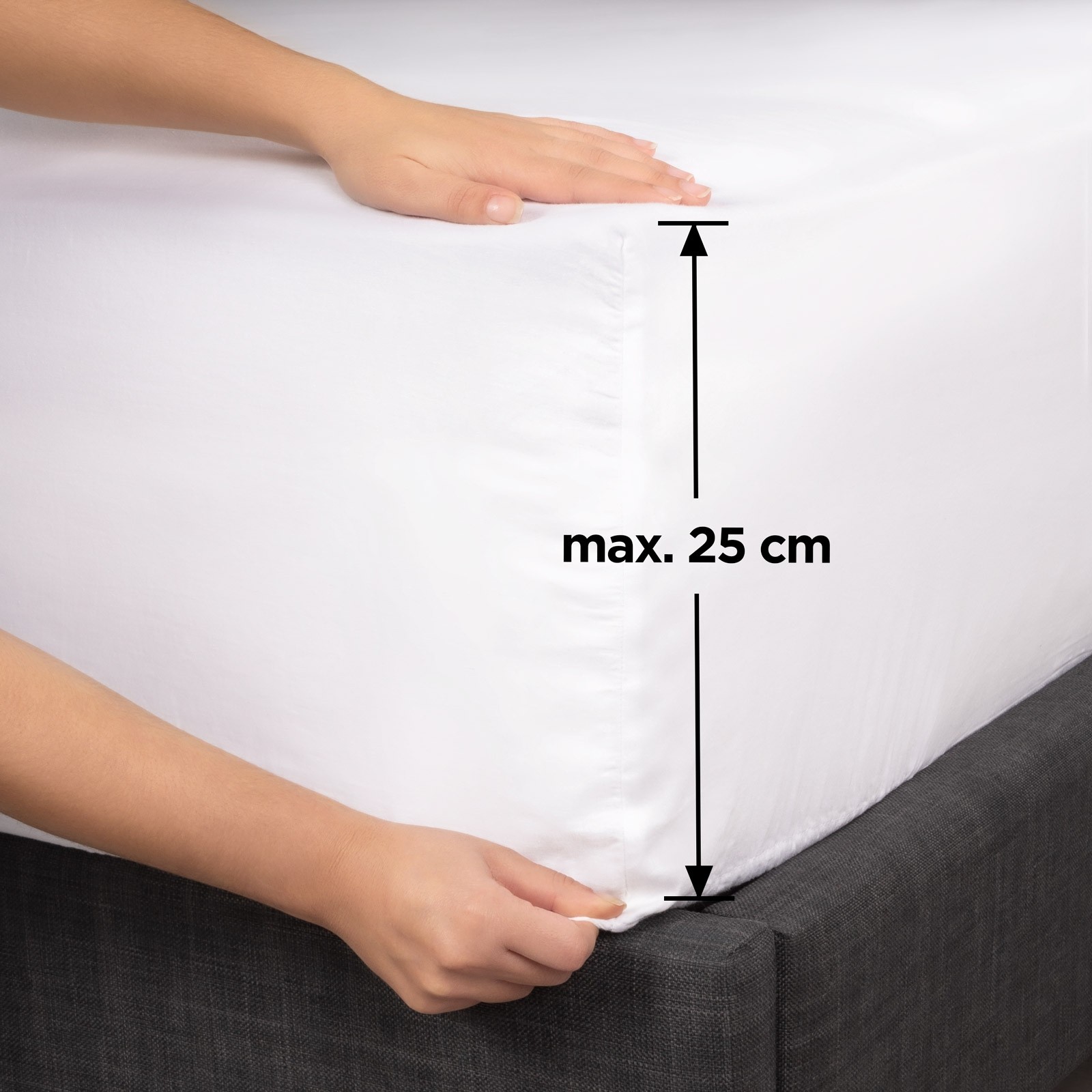 Naša rjuha je primerna tudi za višja ležišča, vse do višine 25 cm. Skrb, da se ne bo prilegala tvojemu ležišču je torej odveč. Hkrati pa se bodo enobarvni odtenki rjuhe odlično podali k različnim vzorcem tvojih najljubših posteljnin.